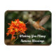 En este imán aparece una foto de bonito de un colibrí alimentándose de una flor naranja. Con el mensaje "Deseándote muchas bendiciones de otoño", es un pequeño regalo perfecto para dar a la familia o amigos para la decoración de otoño.