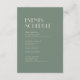 Este otoño Boho Deco | Tarjeta de recinto con horarios de boda verde sabio crea un desierto rústico sencillo y versátil o temática occidental del país para su celebración matrimonial. Con la combinación de colores verde sabio, musgo, oliva y verde azulado, combinada con el diseño minimalista beige claro, se puede combinar con los demás colores de esta colección de otoño para crear su propio esquema de colores. Añade más información en la parte posterior para una cronología repleta de eventos e información para tus invitados.