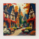 Step into a storybook world with this enchanting "Whimsical Autumn Village" jigsaw puzzle. This delightful scene captures the magic of an old-world town at the height of the harvest season. Stroll down the winding cobblestone street lined with charming half-timbered cottages, their windows glowing with warmth.