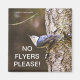 El pájaro amarillo y azul con palabras que dicen que no hay volantes por favor hace un imán agradable para tu buzón de correo.