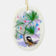 Este adorno navideño presenta un pollo dulce en un árbol verde con decoraciones navideñas.