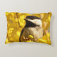 Aquí hay una almohada de acento floral con un adorable pollo blanco y negro entre flores de forsythia doradas y amarillas. Este pequeño pájaro dulce es una de las criaturas más amistosas del reino animal. ¡Una gran idea para los jardineros o los pájaros!