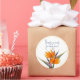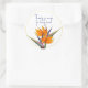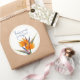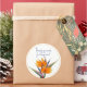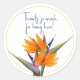 Camiones de boda con pájaro naranja de flores del paraíso. Texto de escritura azul personalizar, en letra manuscrita moderna, para decir "gracias" a los invitados por asistir al boda. Los pegatinas redondos vienen en dos tamaños. Si quieres, puedes pedir paquetes en recepción, ducha u otro evento. Este diseño está diseñado para la forma pegatina redonda, pero puede funcionar en otras formas. ¡No dejes que el texto se acerque a los bordes!