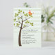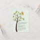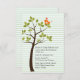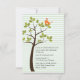 Elegante invitación para la cristalización del bebé hecha con fondo de rayas horizontales verdes. Los gráficos de un árbol con un solo pájaro decoran el lado izquierdo de la invitación. El texto negro está listo para personalizar para leer lo que quieras. Encantadora invitación.