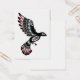 Este diseño único cuenta con un pájaro flotante inspirado en Haida. El patrón nativo muestra un diseño de aves tribales que consiste en líneas fluidas y formas elegantes. Las alas de los pájaros suben por el lado del patrón con su cola colgando por debajo. Un pequeño pez aparece en un círculo dentro del estómago de los pájaros. Este hermoso patrón es una representación elegante de esta maravillosa criatura voladora.