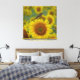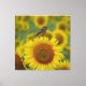 Foto de primer plano de un pequeño pájaro encaramado en un girasol floreciente, rodeado por un campo vibrante de flores amarillas. Ideal para los amantes de la naturaleza y de las aves.