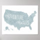 Este mapa de US con letra a mano y acuarela "La aventura espera" es perfecto para exploradores pequeños y grandes por igual. El mapa es un toque final excelente para habitaciones con temática de aventuras, al aire libre o viajes.