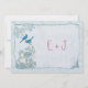 Aves de amor azules reales de época sentadas en una sucursal o invitaciones de matrimonio de damasco azul grapevino