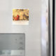 Aquí hay un imán que presenta al señor y a la señora Cardenal del Norte. Es otoño con un glorioso follaje en el fondo, pero la primera nieve ha caído para darnos un avance del invierno. Él es un color rojo brillante. Ella es naranja, dorada y marrón. Ambos tienen escudos y picos naranjas. Son realmente la realeza de los pájaros de patio trasero con su canción distintiva y sus colores encantadores.