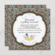 Comience bien su evento con nuestra invitación a la ducha de Novias Modernas y Modernas con un lindo par de pájaros amorosos vestidos con atuendo boda en un nido sobre un fondo marrón y turquesa de hojas de damasco. Simplemente personalizar nuestra invitación con la información de su boda y todos están listos para irse.