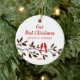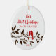 Nuestro primer ornamento de Navidad tiene un elegante par de pájaros rojos de amor sentados en una rama marrón! Personaliza tu información y tu fecha y estás listo para irte. Maravilloso obsequio de honor para su primera navidad y una gran adición a su colección de adornos de navidad.