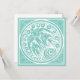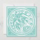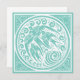 El ilustracion vintage de los animales Art Nouveau de color verde azulado diseño con varios pájaros voladores en el centro rodeados de olas de viento o océano con mariposas y estrellas en las esquinas.