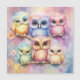 Pequeñas y adorables lechuzas y flores acuáticas.