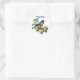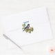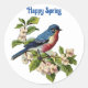 La preciosa foto de un pájaro azul en una rama con flores rosas, aparece en este pegatina de primavera. Con mensaje, "Happy Spring", este es un gran pegatina para usar en envíos especiales, decoración, scrapbooking y más para Primavera y Pascua!