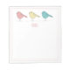 Tomar notas será más agradable con este lindo bloc de notas. Tres pájaros coloridos en un alambre decoran cada hoja, con mucho espacio para tu encargo o lista de compras, o cualquier otra cosa que quieras seguir.