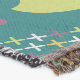 Aves caprichosas y productos de mariposas para el hogar, la oficina y el uso personal con un patrón de pájaros y mariposas brillantes, alegres y caprichosos con un fondo verde azulado, pájaros de color blanco, oro, verde y vino, y muchas flores, mariposas, corazones y x's.