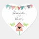 Aves Excéntricas Y Sello para sobres De Aves. En la parte superior hay varios colores con pájaros verdes que vuelan hacia un pajar con una entrada en forma de corazón. Diseño limpio y sencillo, ideal para los amantes del Boho y del Shabby Chic. Personalizable fácil para que añadas tus propios detalles.