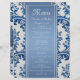 Aviador con monograma del menú de la cena de boda del modelo frondoso del damasco del azul real. Observe por favor, cinta es la imagen impresa. Usted puede mover la cinta y el marco redondo hacia arriba y hacia abajo o quitarlos simplemente.