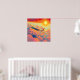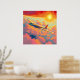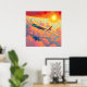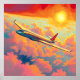 Obra de un avión de pasajeros volando sobre las nubes con un sol abrasador en el fondo. Un avión se corta a través de un cielo en llamas con los cálidos tonos de la puesta de sol o de la salida del sol -naranjas encendidos, rojos vibrantes y rosados suaves mezclados con azules profundos y púrpura en las nubes. El sol brillante brilla intensamente, arrojando una luz dorada sobre el avión mientras vuela por esta magnífica pantalla aérea. Esta obra de arte capta la alegría de volar y la belleza asombrosa que se encuentra en lo alto del mundo. Un bello y edificante artículo que invita a la sensación de libertad y posibilidad en tu hogar. Esta pieza se puede personalizar, imprimir y o descargar.