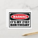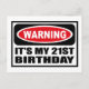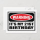 Aviso: Es mi postal 21 de CUMPLEAÑOS que puedes personalizar en www.WarningSignShirts.com y presenta una señal de advertencia roja y negra y ES MI CUMPLEAÑOS 21 en negritas letras negras para advertir al mundo. También puede personalizar su propia tarjeta postal con el texto que desee.
