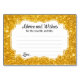 Estas elegantes tarjetas de boda y deseos dorados brillan serán la incorporación perfecta a su recepción nupcial. Este diseño presenta un marco dorado brillante con el texto "Consejos y deseos para los nuevos Mr. y Mrs." en una combinación de fuentes caligráficas y simples de color negro. La tarjeta permite a los clientes dejar sus felicitaciones, consejos sobre el matrimonio y su nombre. Signo de oro coincidente disponible.