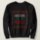 This knit-style “Awesome Like My Niece” Christmas design features a stitched sweater effect with red, green, and white lettering. Ornaments, stockings, stars, snowflakes, and gifts complete the festive winter look — perfect for Christmas parties, family gatherings, and fun seasonal photos celebrating your niece.
