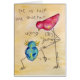 Un ave más grande dulce y encantadora, ayudando a un pequeño pájaro herido.