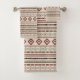 El diseño de motivos mixtos influenciados por azteca en tonos marrones y rojos en un fondo de color crema.
