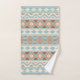 Diseño de patrones de superficie influenciado por azteca en colores azul, crema y terracota.
