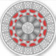 Un patrón geométrico simple en el exterior, inspirado en parte por los antiguos diseños aztecos, rodea una capa temática extraterrestre, una capa gradiente y una simple capa de acequia en este diseño de círculo concéntrico.