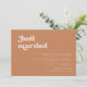 Un tema de moda retro: adopta este diseño tipográfico algo vintage y elegante para tu papelería boda, con un naranja quemado, terracota, azúcar marrón y color rosa melocotón. Personalizable completo de texto, colores y fondos.