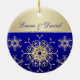 Recuerde su día especial con esta marina de guerra festiva hermosa y azul real con ornamento de cerámica formado redondo del recuerdo del navidad de los falsos copos de nieve del purpurina del oro (IMPRESO) el primer junto que se puede modificar para requisitos particulares con los nombres de la novia y del novio, y el año. Usted puede modificar el texto para requisitos particulares para decir lo que usted quiere y lo utiliza como favor del boda en su invierno o navidad que se casa, o como decoraciones para sus piezas centrales o decoración del lugar. El **** esté POR FAVOR seguro que su texto está puesto donde usted lo quiere, pues imprimirá como aparece en su monitor. Zazzle no corregirá cualquier cosa. También hace juego la invitación del boda mostrada abajo. Si usted quisiera una diversa forma, o si usted necesita alguna ayuda, envíe por correo electrónico por favor niteowlstudio@gmail.com.