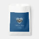 Favor de las Bolsas con un diseño de dos novios, parados a ambos lados de un corazón dorado sobre un fondo azul. Este artículo forma parte de un conjunto de bodas que incluye una invitación a la boda, una tarjeta rsvp y más. (Los elementos de oro del conjunto son de oro falso y no de Relieve metalizado de oro).