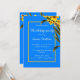Románticas flores azules y amarillas invitaciones de verano y cumpleaños de primavera para una moda y un cumpleaños romántico.
