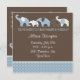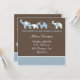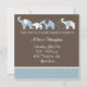 Los elefantes azules y blancos con marrón están alineados sobre la frase "Te invitan a una ducha de bebé en honor de", con círculos de color marrón sobre azul en la parte inferior. Sólo tienes que cambiar la redacción escribiendo tu información.