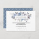 Diseñado para coordinar con nuestra colección de bodas Dream Pink Floral, esta elegante tarjeta de cerramiento de recepción botánica presenta un marco de flores pintadas con acuarela, en tonos de azul polvoriento y periwinkle sobre el texto de su mensaje deseado.