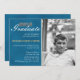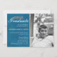Textura azul del muchacho de la invitación de la graduación con el parte movible de la foto.