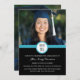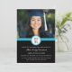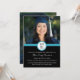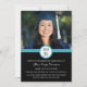 Tarjeta de encargo de la foto de la invitación de la fiesta de graduación en el azul brillante, diseño moderno blanco y negro. Modifique esta tarjeta de la foto para requisitos particulares del graduado añadiendo el año de su graduación, de sus propias fotos, y de sus detalles de la fiesta de graduación.