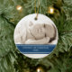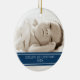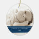 El primer navidad del bebé adorna personalizable con su propia foto de familia en azules marinos y blanco oscuros elegantes. Un regalo elegante del navidad para la mamá estas vacaciones.