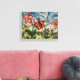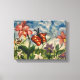 Azul dulce con arte infantil Naranja en tela estirada. Arte Original De La Escuela Y Su Profesor De Arte (yo). Tema Primavera, Flores, Abejas Y Mariposa. Vaciando pintura regada en el lienzo que creó un efecto de movimiento, entonces cada niño se dio la vuelta pintando una flor o insecto , ¡una actividad muy divertida! Artista Tanya Arseneau Nanniesfineart