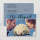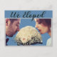 Modern Dusty Blue We Eloped Boda Invitación Postcard Comparte tu alegría de convertirte en una pareja oficial casada con esta adorable y polvorienta postal azul "We Eloped' que anuncia tus nupcias a aquellos que no pudieron estar contigo en tu día tan especial.