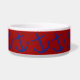 Anclas náuticas clásicas en azul vibrante en un fondo rojo brillante.
