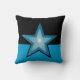 Diseño moderno con una estrella "brillante" azul y negro sobre un fondo negro y azul. Tira una almohada con un diseño de personalizable para que puedas personalizar con tu propio texto, imágenes e ideas. Esta es una imagen de arte digital creada con fotografías originales y técnicas digitales e impresa en tela, no brilla ni contiene chispas reales.