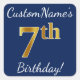 Azul, Faux Gold 7 cumpleaños + Pegatina de nombre