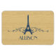 Elegante y moda French Flourish Premium Magnet con un falso fondo de madera y un diseño de la Torre Eiffel en azul oscuro adornado con cascadas de elegantes remolinos. Este diseño elegante y elegante es fácil de personalizar con el texto personalizado de su elección. Haga clic en "Personalizar" para encontrar más opciones de personalización.