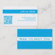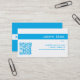 Azul imperial de la tarjeta de visita con los detalles del contacto codificados en un código de QR.