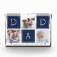 Crea un dulce sake para un papá amado por el Día del Padre, su cumpleaños o las vacaciones, con este sencillo diseño que incluye tres de tus fotos favoritas de Instagram, dispuestas en un collage con cuadrados alternados de azul marino que escriben "DAD". Personaliza con fotos favoritas de sus hijos y agrega un mensaje personalizado a lo largo de la parte inferior.