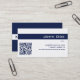 Azul marino imperial de la tarjeta de visita con los detalles del contacto codificados en un código de QR.