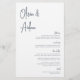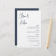 Diseñado para coincidir con nuestras invitaciones de boda manuscritas modernas. Un hermoso diseño basado en tipografía con un toque minimalista, con escritura moderna manuscrita azul marino y letras serif clásicas. Personalice los elementos de menú con ocho campos de texto personalizados.