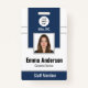 Plantilla de identificación de foto de empleado profesional en azul marino y gris. Este diseño moderno incluye espacio para el logotipo de su empresa, la foto del empleado, el nombre, el título y el número de identificación, con un código de barras opcional para uso de seguridad. Perfecto para oficinas corporativas, salud, escuelas, tiendas y eventos. Fácil de personalizar: simplemente sube tu foto, agrega tus detalles y crea una tarjeta de identificación pulida para el personal o los miembros del equipo.